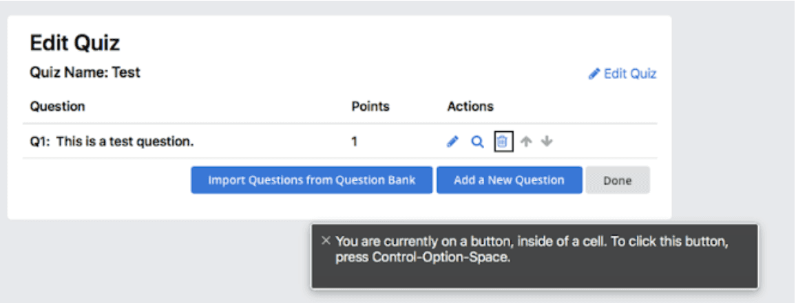 See below: the screen reader didn't specify that the button was the delete button, failing to communicate an irreversible potential action.