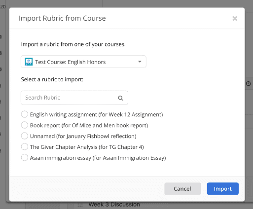 See below: a newly designed modal that allows instructors to import a rubric from any other assignment in any of their courses.