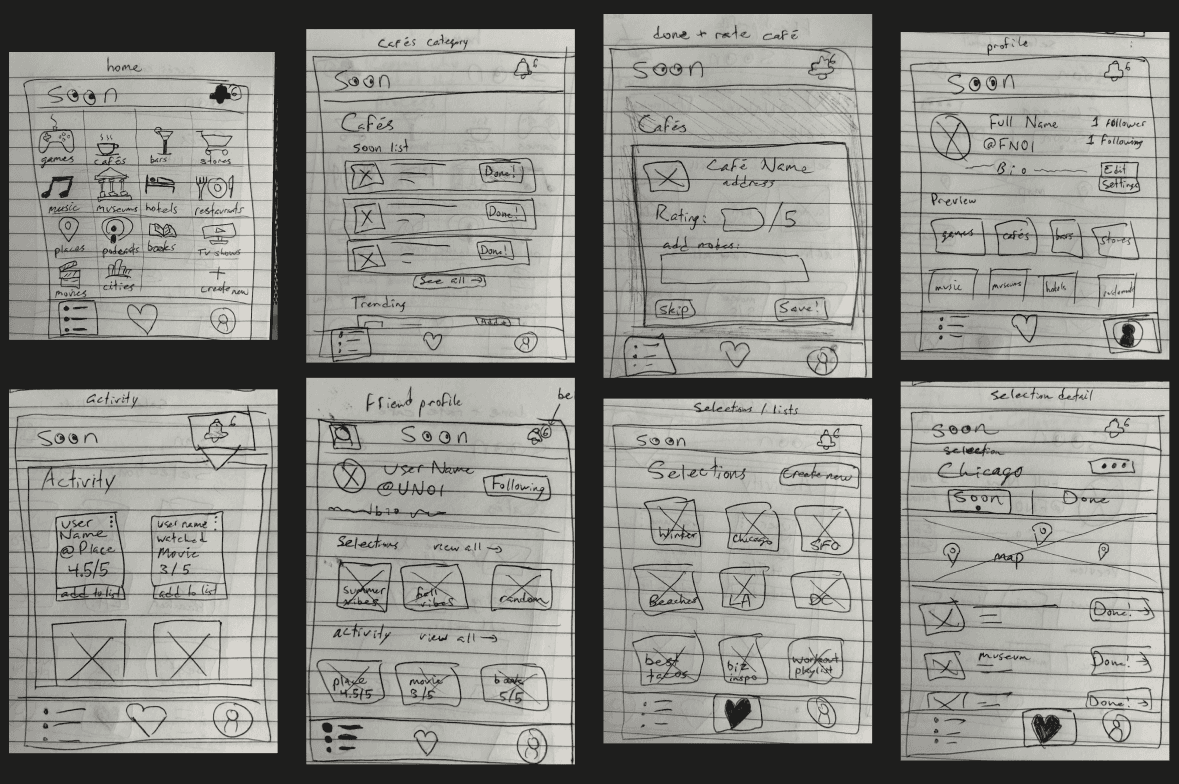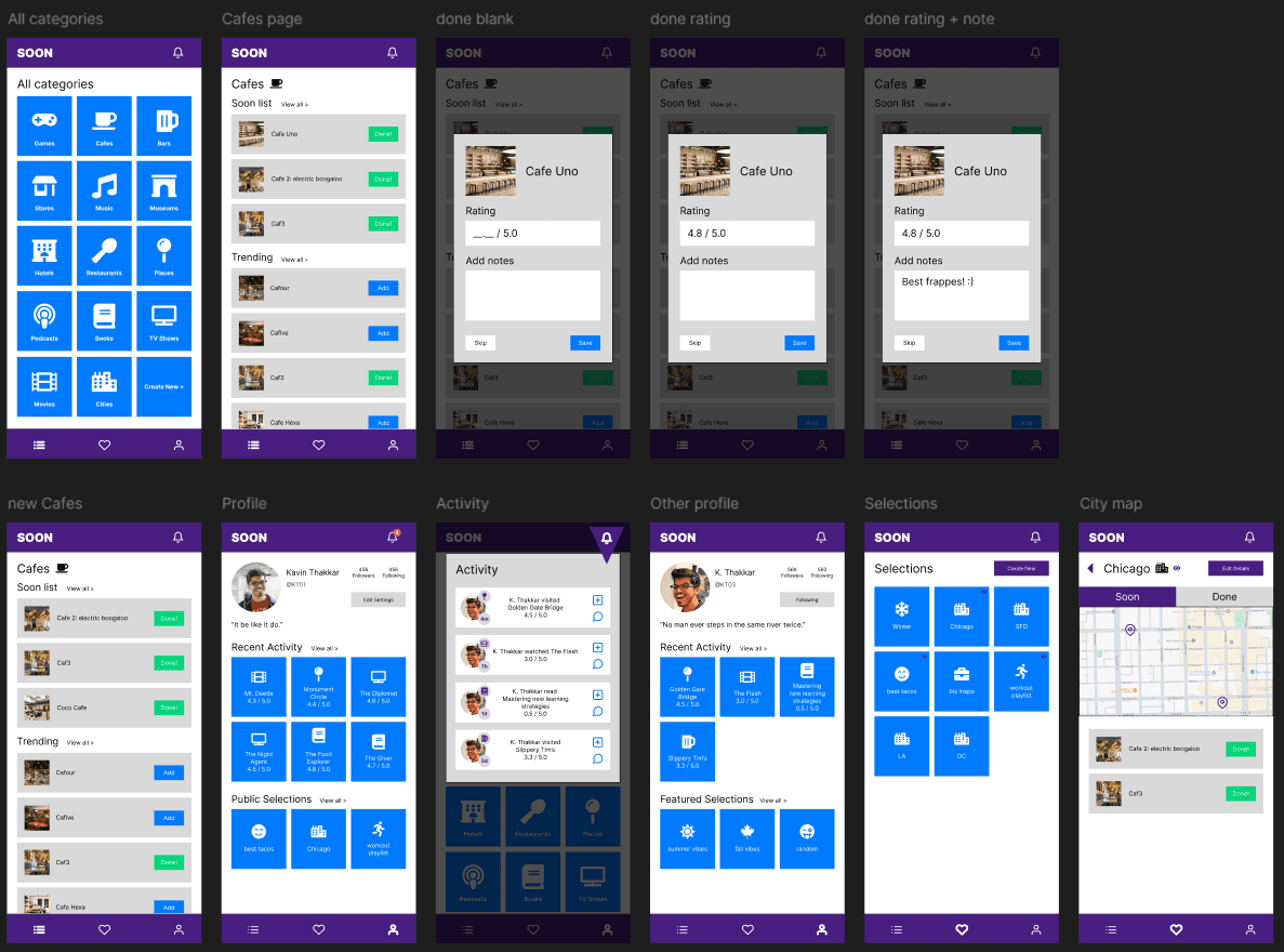 As part of my Visual Design for User Interface course, I did a redesign of the app "Soon." Soon is described as an “everyday bucket list,” letting users keep track of recommendations across a wide variety of categories of things to experience. The primary issues I tried to tackle were redundant buttons and inefficient screen space.
